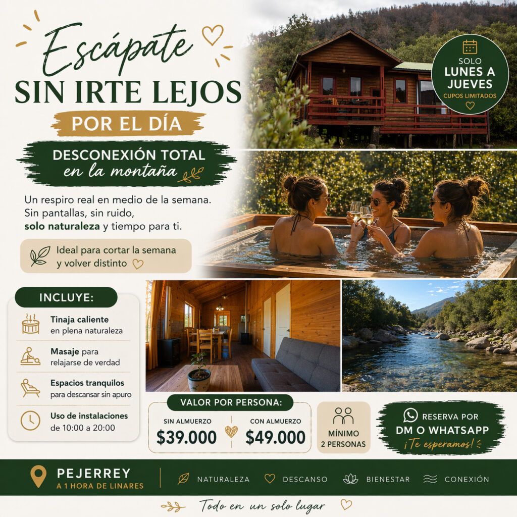 A solo 1 hora de Linares, en el corazón del Achibueno, encontrarás un espacio pensado para descansar de verdad.